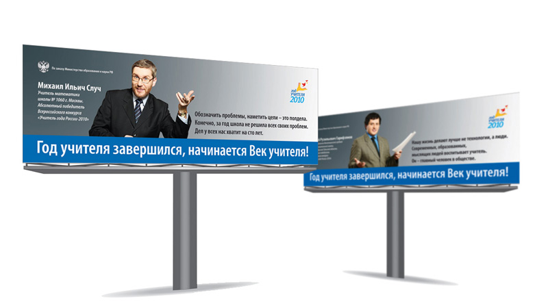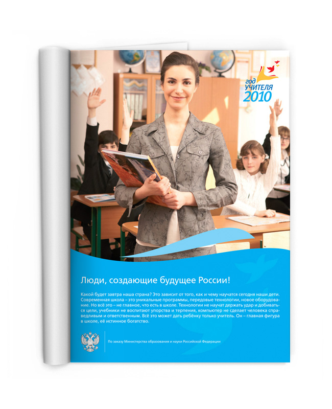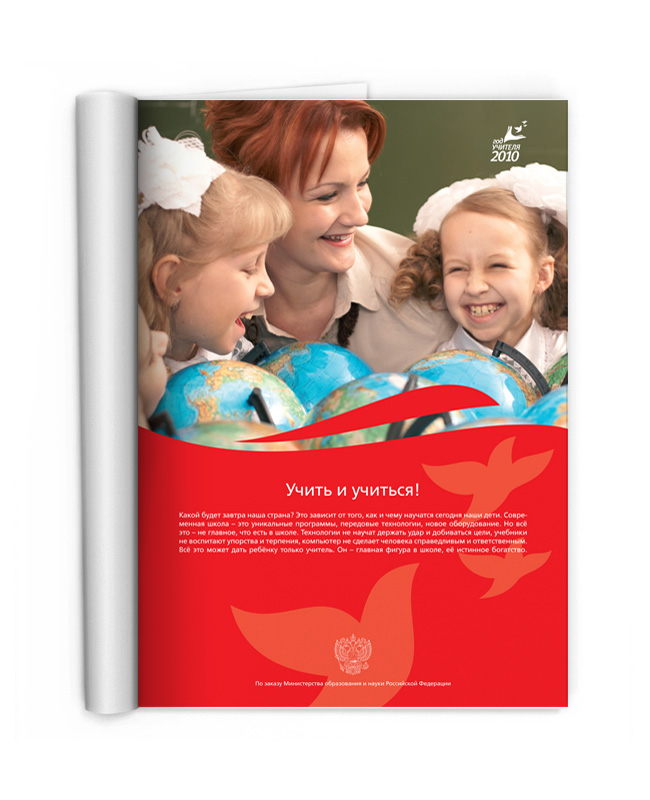 Указом Президента России 2010 год был объявлен Годом Учителя. По заданию Министерства образования и науки Российской Федерации и Федерального агентства по образованию был проведен Всероссийский конкурс на создание эмблемы Года Учителя. Всего на конкурс поступило порядка 3000 эмблем, из которых были отобраны 344 работы. В финале конкурса была выбрана одна работа, которая и стала символом Года Учителя. На основе победившей эмблемы было создано руководство по использованию фирменного стиля и различной рекламно-информационной продукции. В рамках работы над фирменным стилем Года Учителя был создан фотобанк изображений и рекламные модули для СМИ и наружной рекламы.