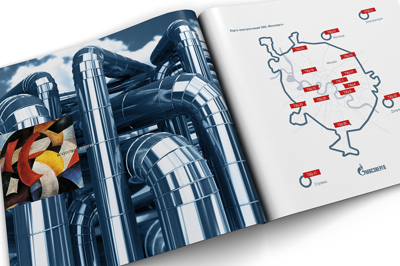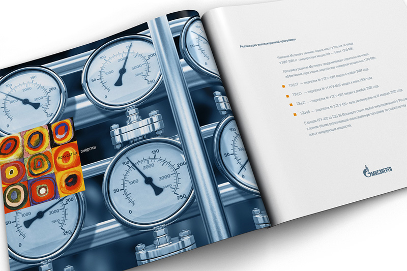 После успешного буклета ОАО «Мосэнерго» 2008 года было принято решение продолжить ассоциативную визуальную линию. Только на этот раз были созданы ассоциации с картинами художников-авангардистов начала 20-го века: Кандинского, Малевича, Поповой.