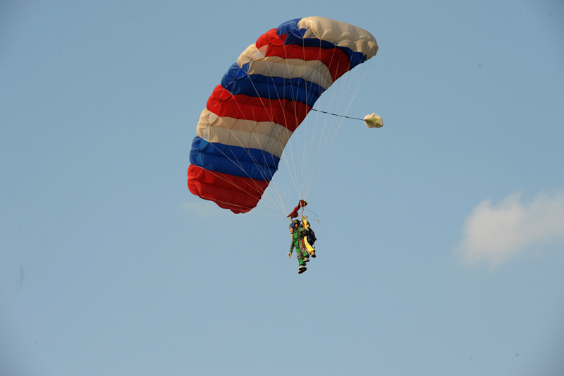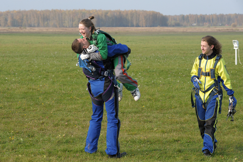 Сначала мужской вопрос поднимали в воздухе - все желающие смогли прыгнуть с парашютом в тандеме с высоты 4000 метров.