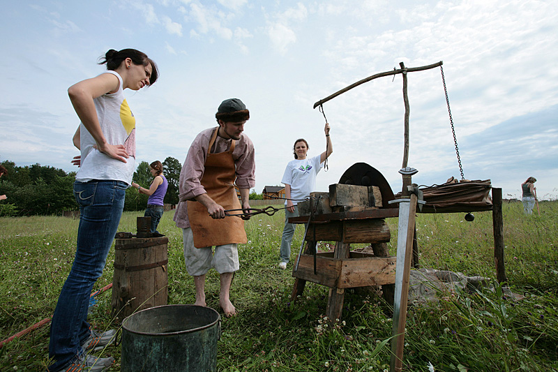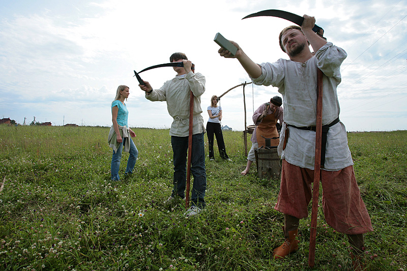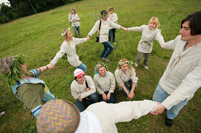Продолжая почин по возрождению русских праздников, компания Мегафон пригласила журналистов на праздник Иван Купала. Все было как в старину: обряды, игры, песни, плетение венков, ночное купание в реке, поиски цветущего папоротника... А утром второго дня, по традиции, участники погли на сенокос, где многие впервые взяли в руки косу, а также попробовали другие ремесла - кузнечное и гончарное дело.