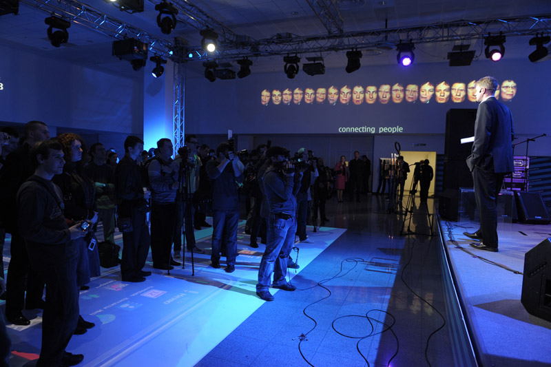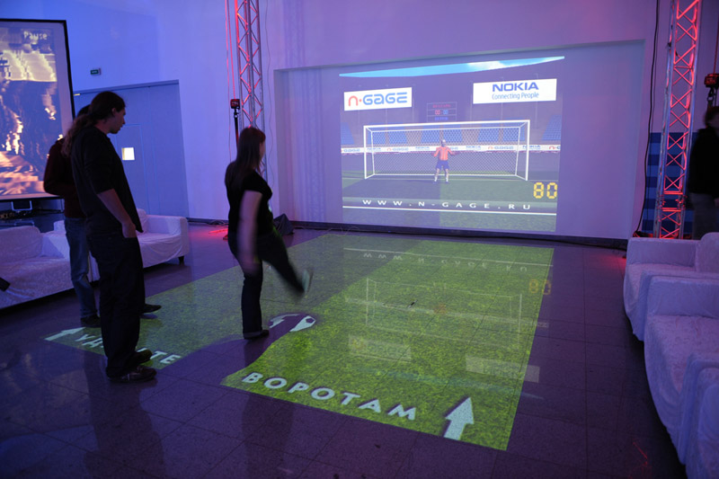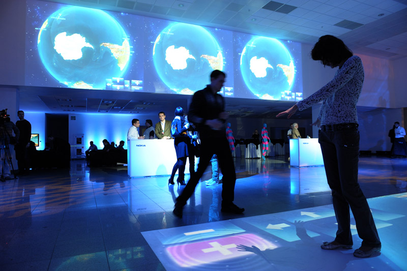 Для демонстрации навигационных возможностей телефонов Nokia была создана напольная интерактивная проекция (8х6 метров), имитирующая навигационную систему телефона, в которой каждый участник мог совершить виртуальное путешествие по нашей планете — вращая земной шар, увеличивая или уменьшая его. Напольная проекция дублировалась на стены зала, создавая круговую проекцию на 360 градусов. После презентации телефона изображение сменилось на интерфейс телефона, и, наступая на иконки, можно было запускать разные программы.